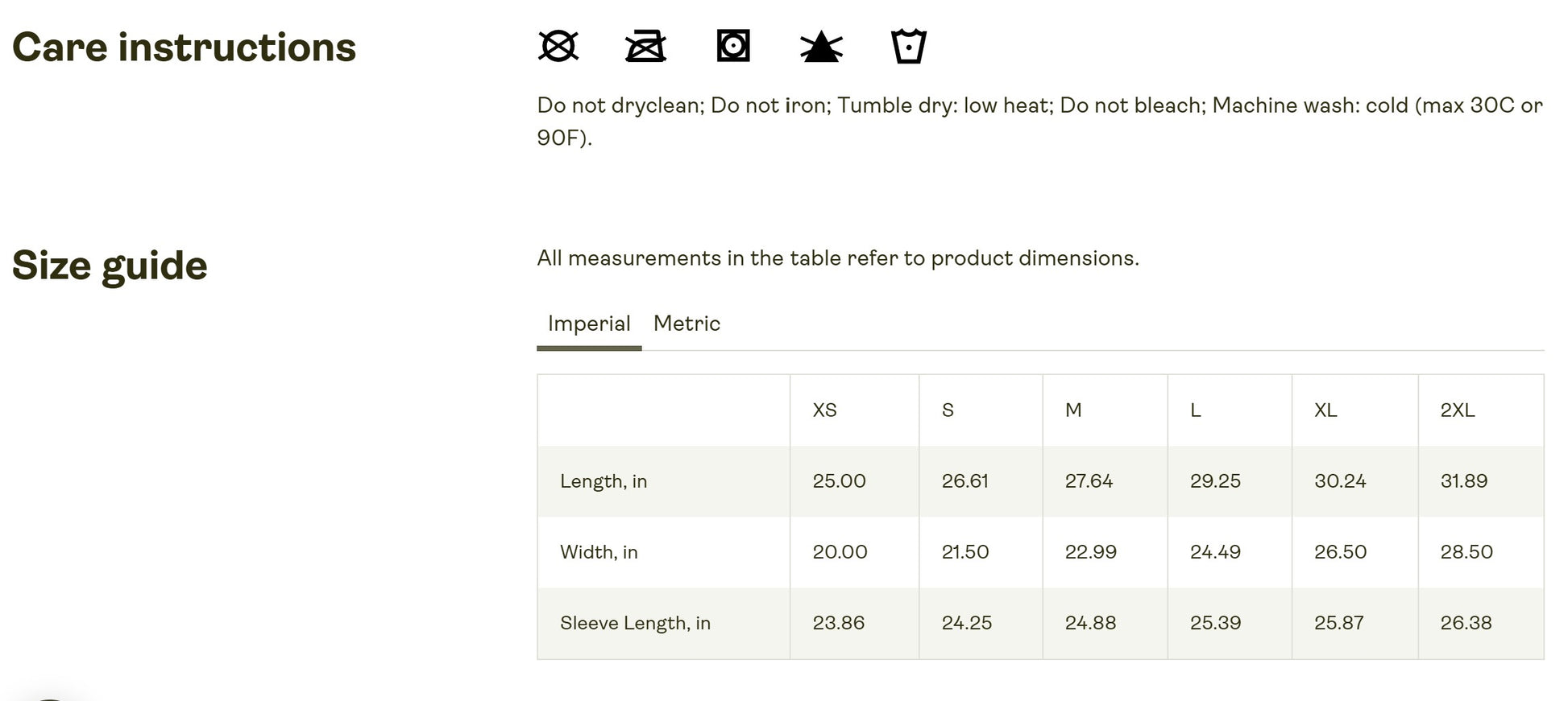 | Sleeve Length, in | 25.39 |